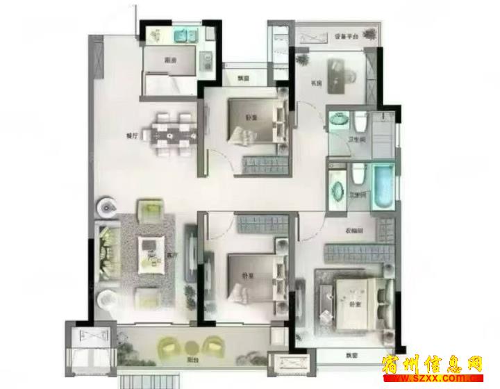 政务区天元府,纯边户128平方,户型方正