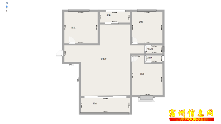 汴河小镇二期,122平,满二,毛坯,三室两厅两卫,89万,可谈