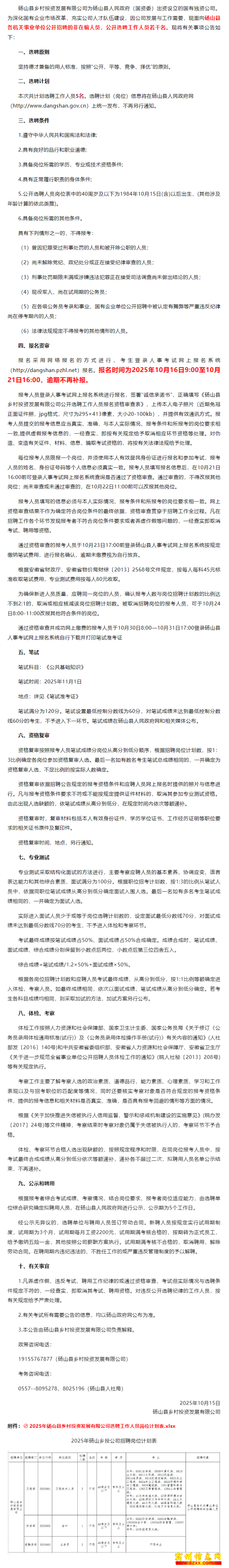 计划选聘5人!砀计划选聘山县乡村投资发展山县乡村有限公司选聘工作人员公告!