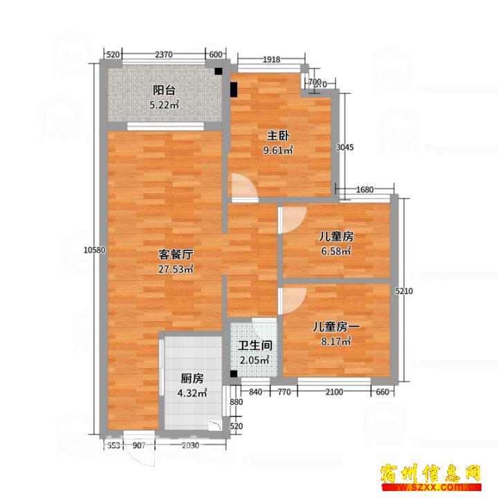 宿州院子北区,面积91.25平,毛坯