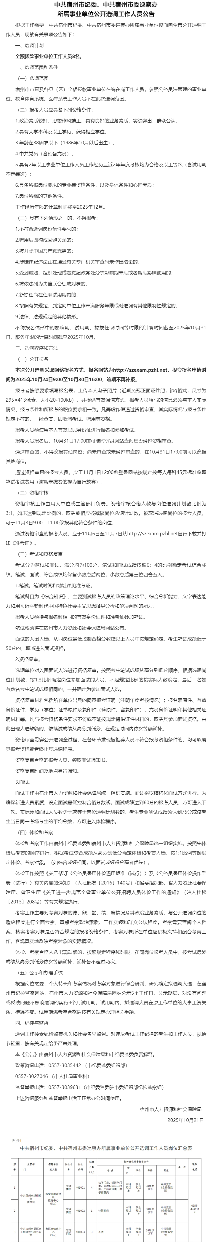 根据工作需要,中根据工作共宿州市纪委、中共宿州市共宿州市委巡察办共宿州市所属事业单位拟面所属事业向全市公开选调工向全市公作人员,现就有关作人员,事项公告如下: