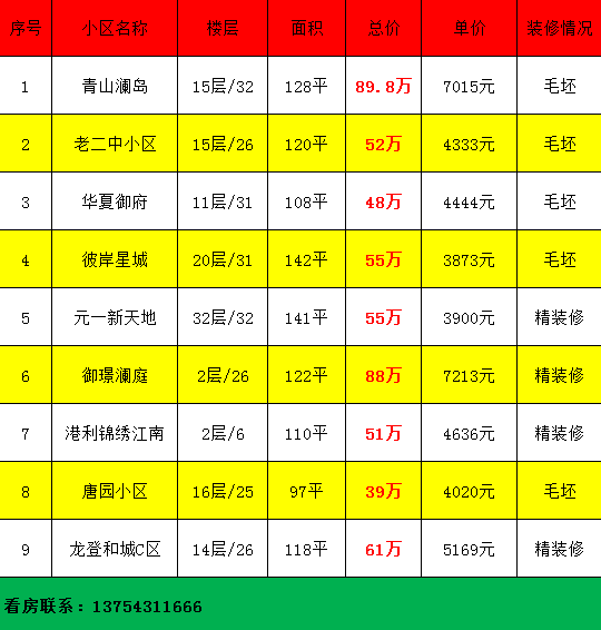 捡漏房源!元一新天地 138平方精装四室 55万 证满五年