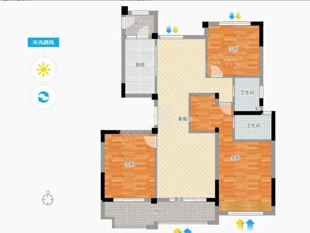 哈佛玫瑰园 豪装 三室2卫 洋房138平