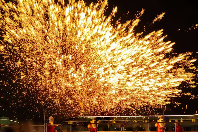 非遗打铁花表演。