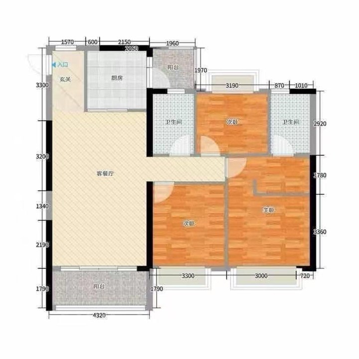 平,三室两厅两卫