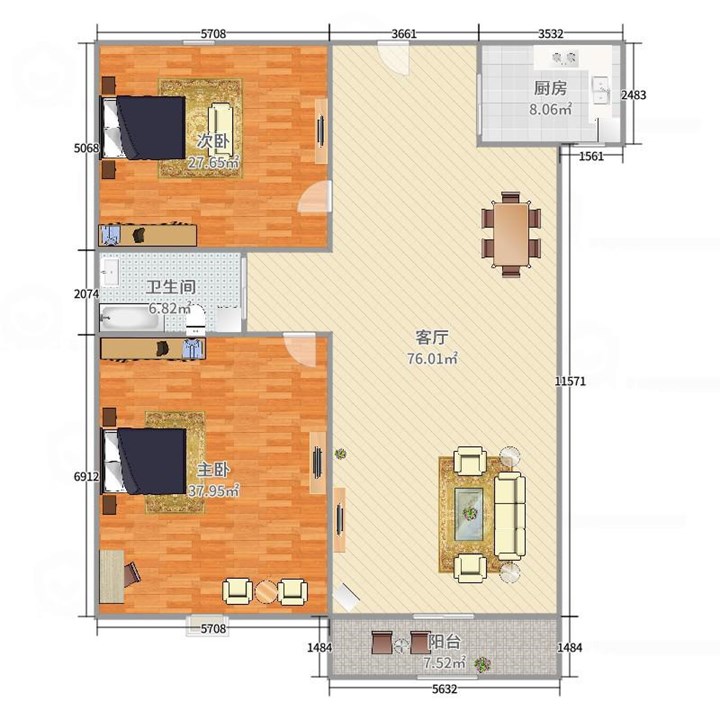 两室两厅一厨一卫