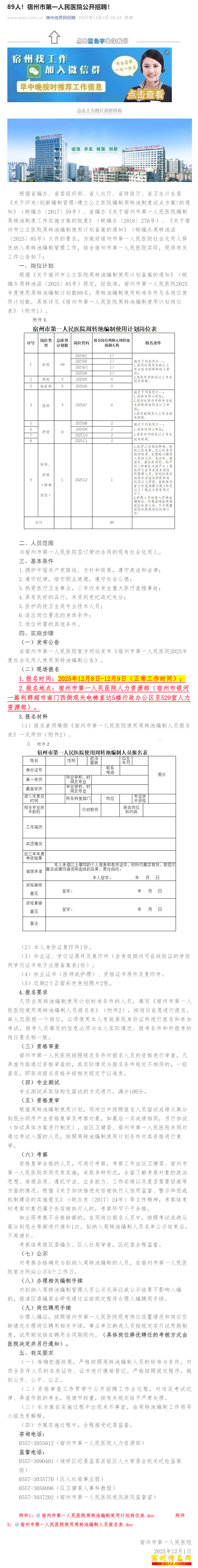 89人!宿州市第一人民医院公开招聘!