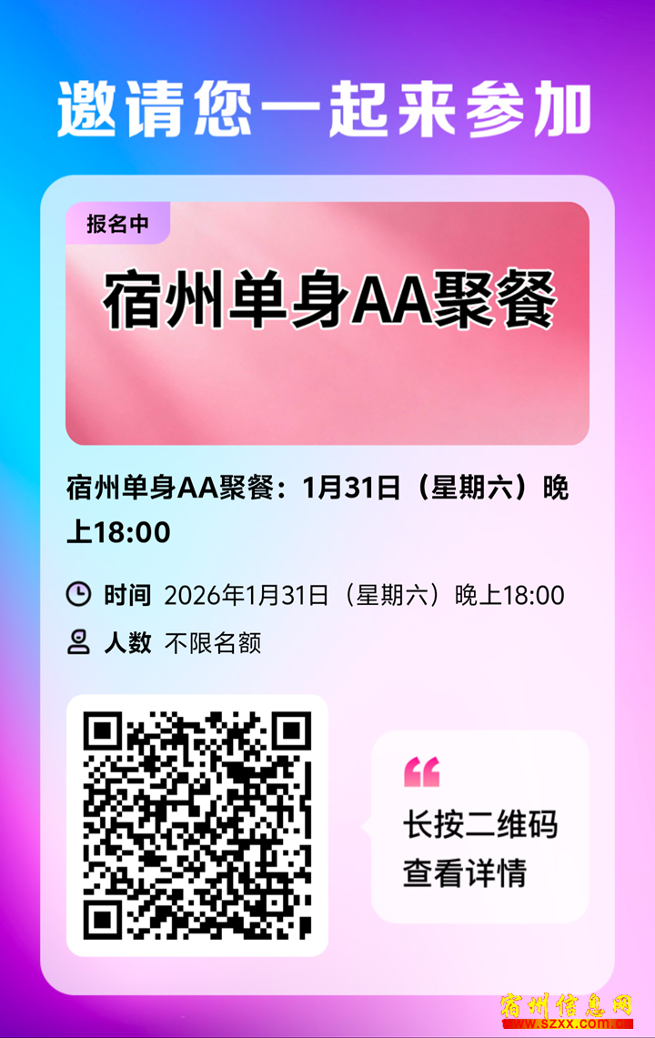 宿州单身AA聚餐宿州单身:1月31日(星:1月3期六)晚上18:00