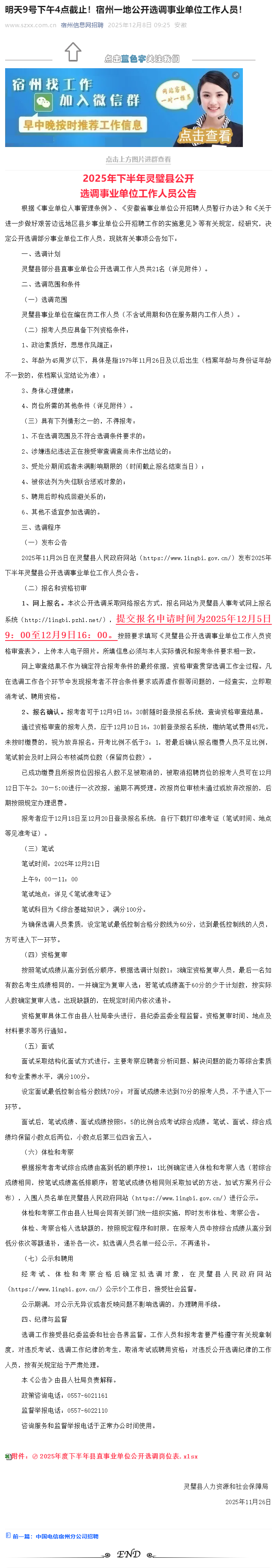 2025年下半年2025灵璧县公开选调事灵璧县公业单位工作人员公告