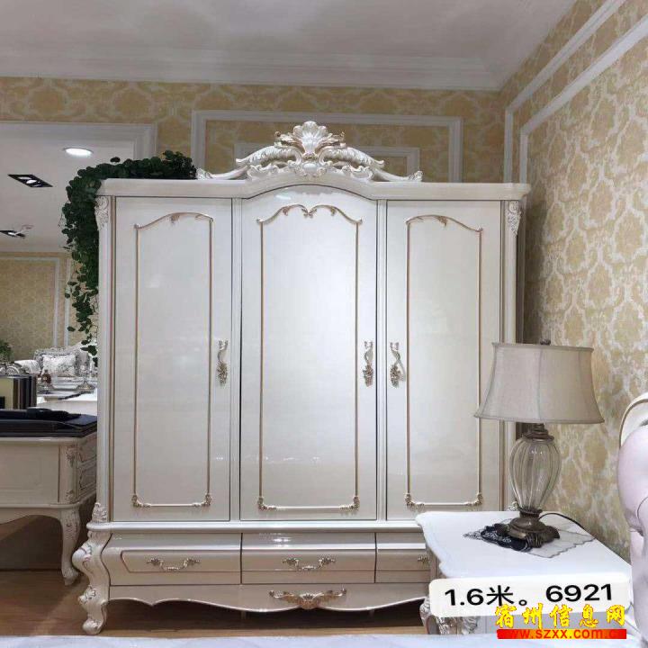 便宜处理实木三开门衣柜,白色欧式衣柜