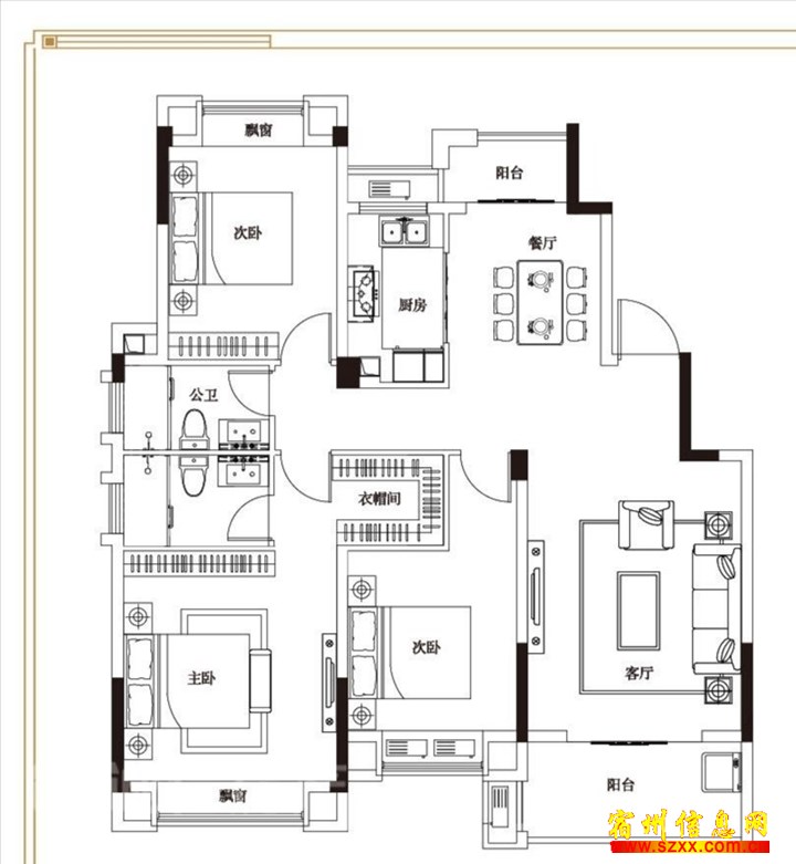 ,精装三室二厅次