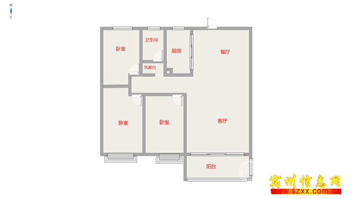 兴福园95平三室