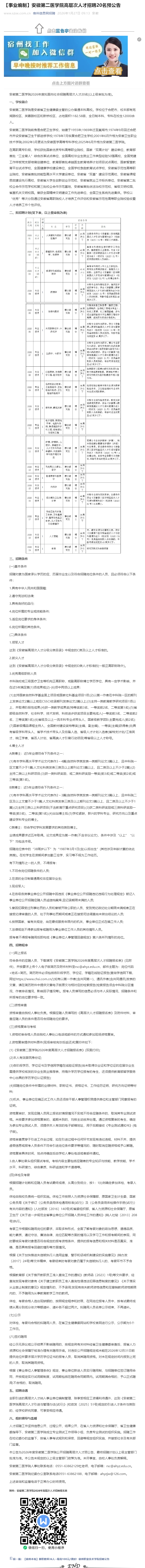 【事业编制】安徽第二医学院高层次人才招聘20名预公告