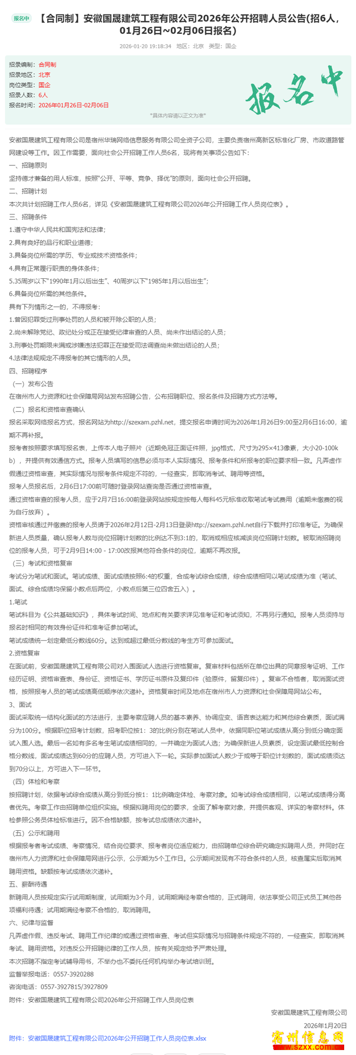 6人!待遇优厚!国企建筑公司正在招聘~