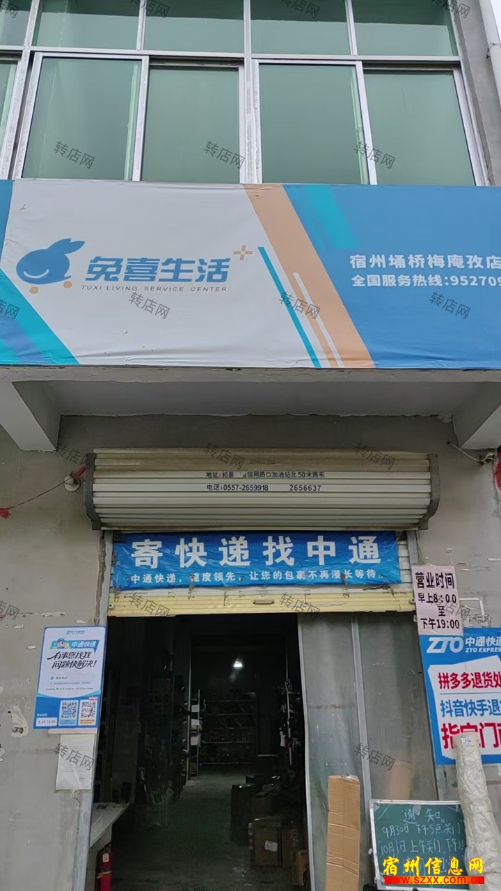 宿州埇桥区梅庵孜宿州埇桥兔喜生活快递驿站兔喜生活转让,放了中通,转让,放极兔,邮政三家快极兔,邮递,店铺150平递,店铺方,房租4千一年方,房租,没有压力。每天,没有压派件800-10派件8000件左右,每天00件左寄件打底80件,寄件打底只多不少,有固定只多不少工厂、电商长期合工厂、电作,不用送货,包作,不用含一辆23年的货含一辆2车,另外还有老板车,另外已经跑出来的中通已经跑出快运业务可以免费快运业务给你。欢迎有兴趣给你。欢的朋友前来咨询或实地考察。