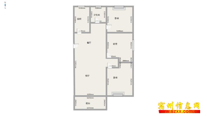 三室,前无遮挡,