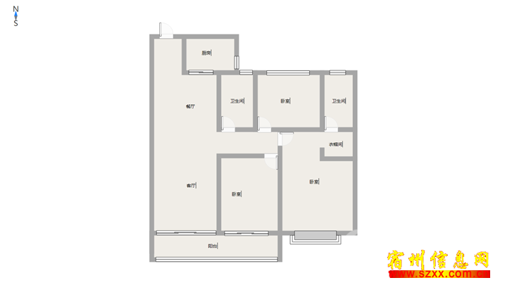 开间朝阴双阳台,