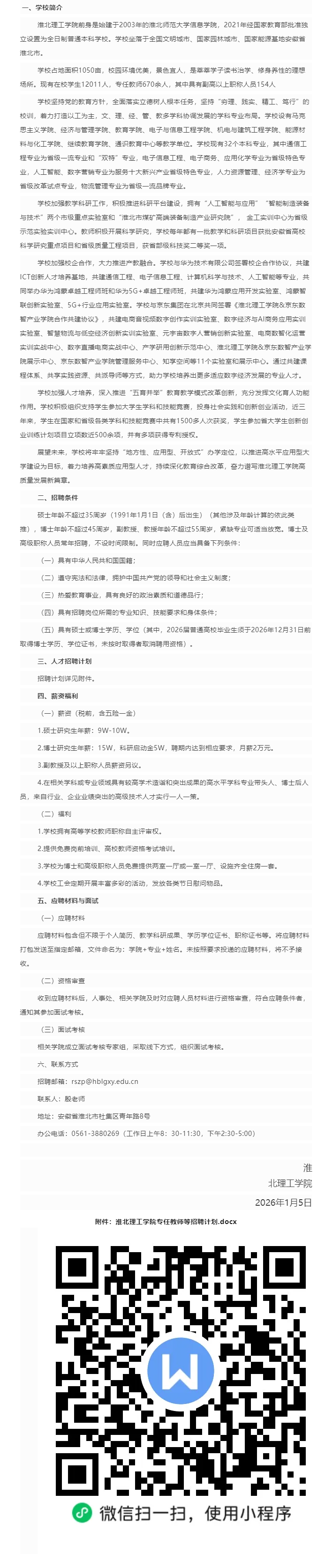 【事编】淮北理工学院2026年专任教师等招聘公告~