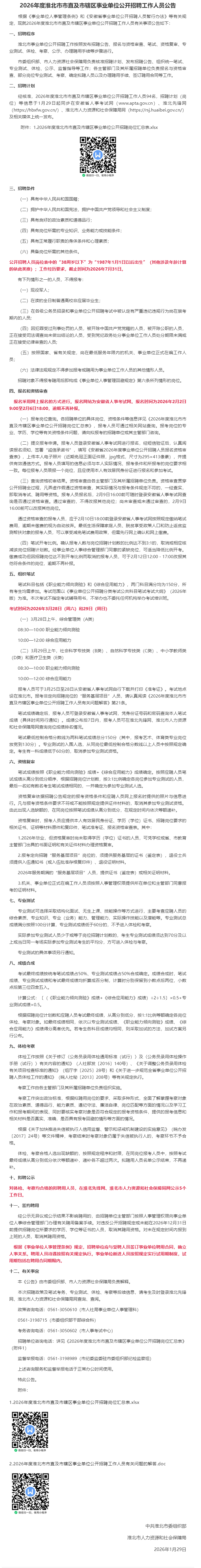 94人,38周岁以下可,淮北市事业单位公开招聘公告~