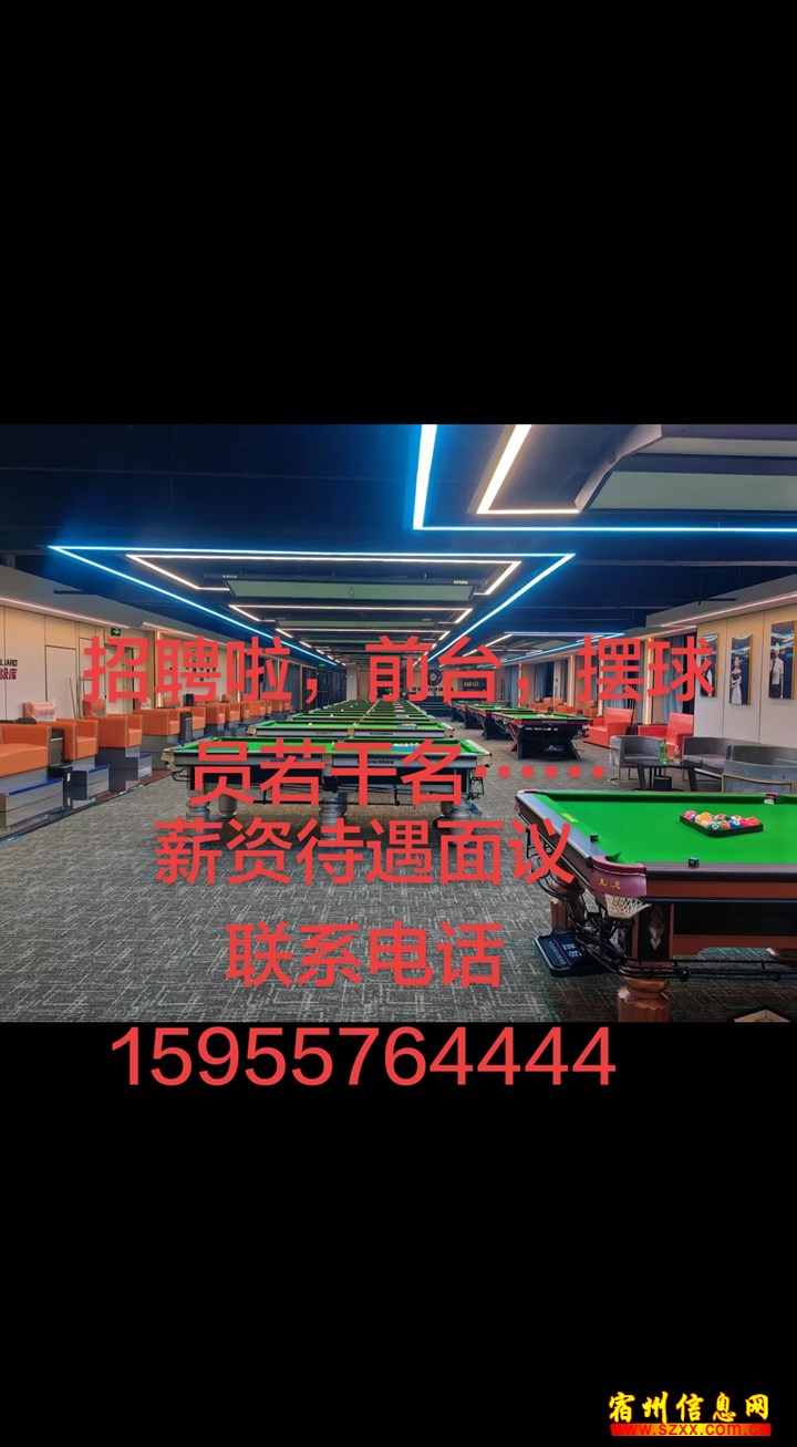 长期招聘前台,摆球员若干名。薪资高,待遇好,