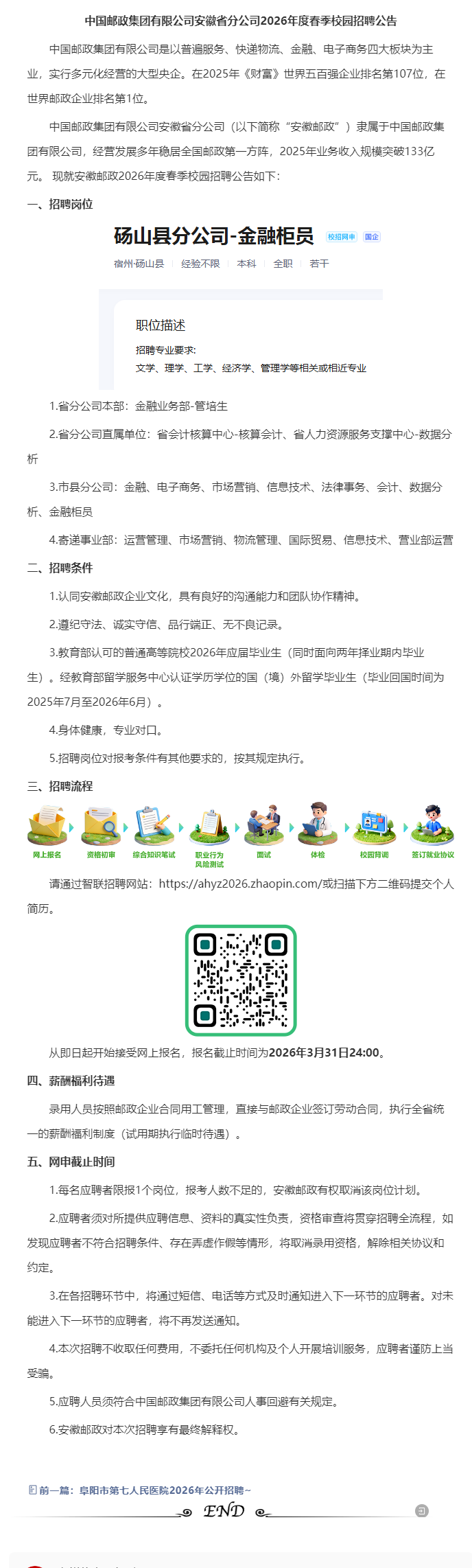 优薪酬,高福利待遇,砀山邮政管培生招聘公告