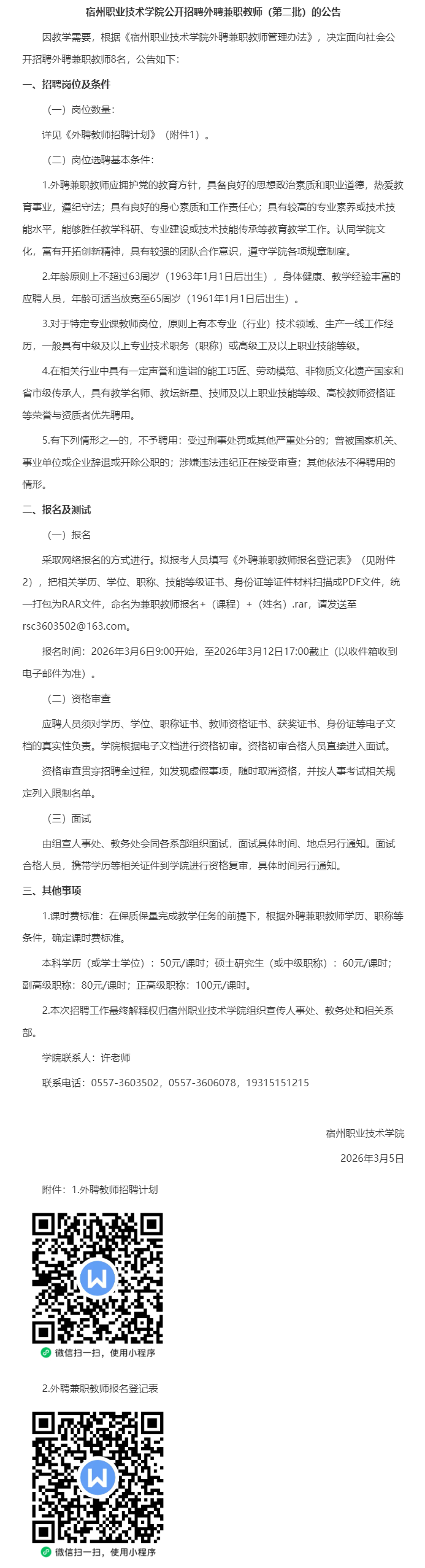 【埇桥】外聘兼职教师,待遇优厚,宿州职业技术学院公开招聘